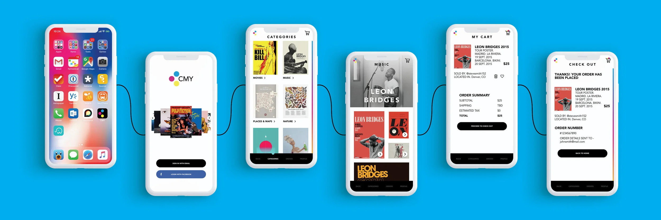 In short, here’s the quick flow of CMY. Open the app, signup or login, browse categories of the posters you’re looking for, browse a specific genre, add a poster to your cart, and check out!