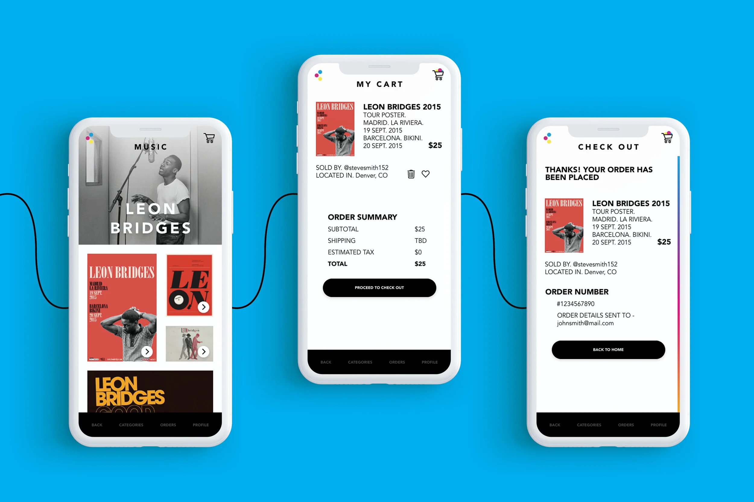 This prototype of CMY shows the full flow. From opening the app, to purchasing a poster, you can view the entire experience here.